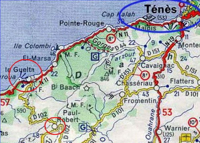 11 août, L'Ecole Militaire de Cherchell avec l'aide des 22ème RI , 3/2ème RI et les Gardes Mobiles du 4/10 procèdent à l'évacuation des européens de la région (et certains musulmans francophiles). 17 septembre, évacuation de toutes les brigades de gendarmerie de la région. ...Il faut savoir que Ténès a été fondée par les Phéniciens , 8 siècles avant J.C. Ensuite occupation par les Romains qui l'appellent « Cartenna ». Plus tard, des marins Andalous créent un comptoir commercial en l'an 895. ...Le Colonel Changarnier chasse les troupes d'Abdel-Kader de Ténès en 1841. Bugeaud fait construire une ville fortifiée en 1843 (comme la Légion à Sidi-Bel-Abbès en 1847)