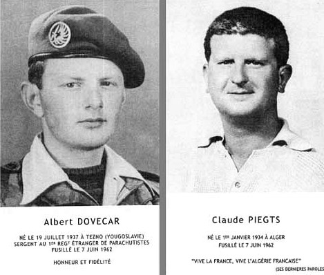 et un civil algérois, Claude Piegts, fusillés le 7 juin 1962 pour avoir assassiné le commissaire central