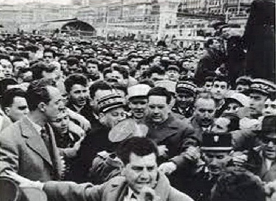 ...Le 2 février 1956, lorsqu'il quitte Alger, il découvre qu'il est adulé par ces Pieds-Noirs, dont il a finalement conquis le coeur. Une foule innombrable l'accompagne jusqu'au quai d'embarquement du port d'Alger. La communion avec ce peuple est totale.